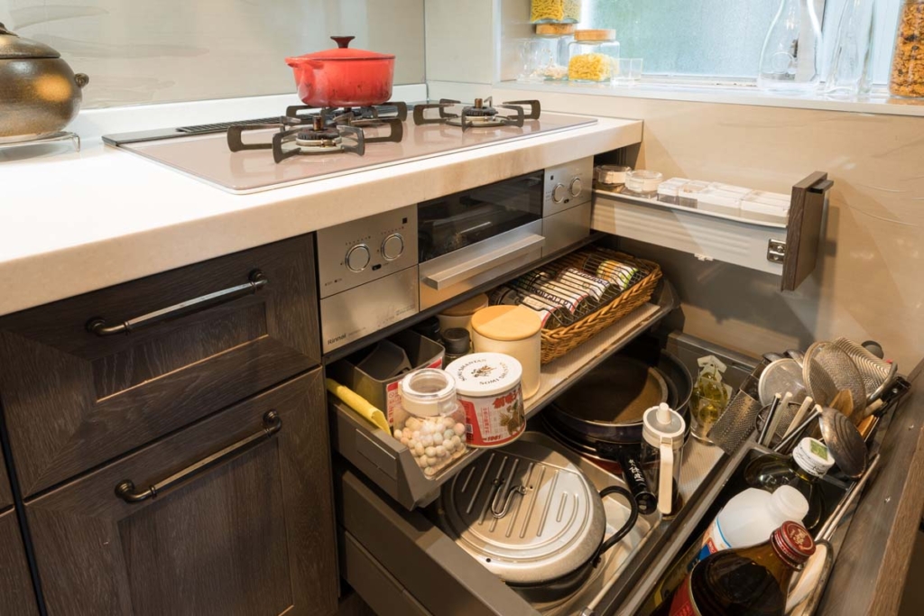 フライパンや調味料、食器などを「どこに収納するか」にはこだわりました