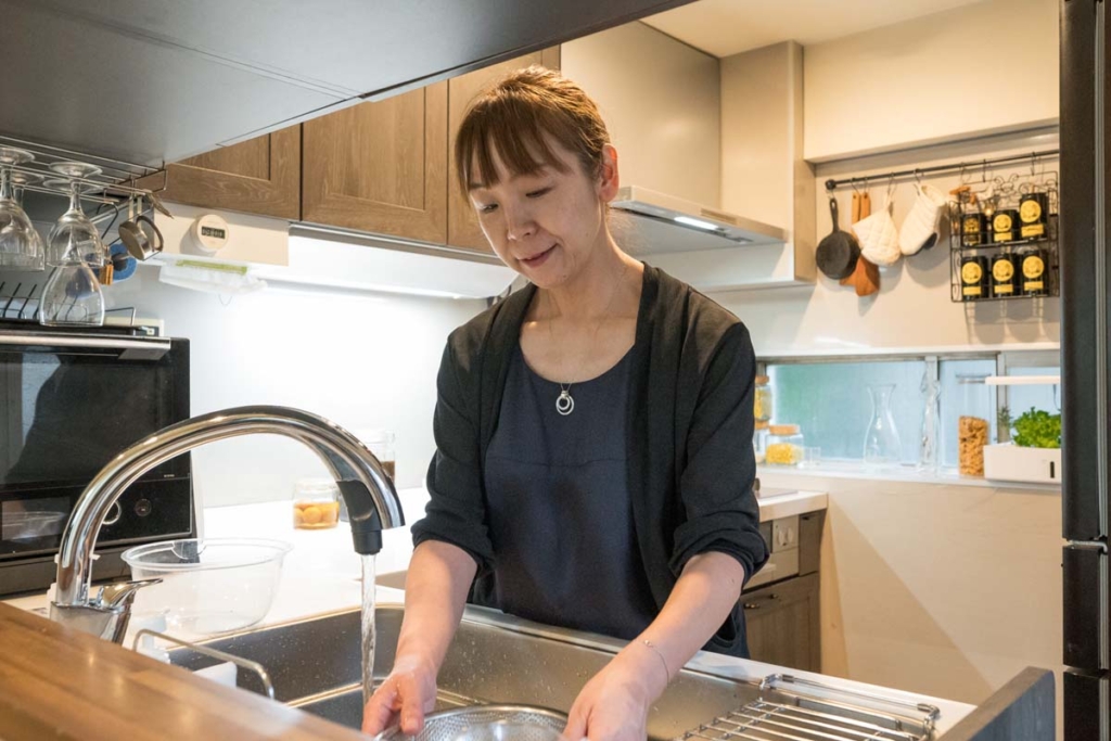 「みんな何でも良く食べるんです。だから私もちゃっちゃとスピーディーに、お料理の品数も結構作りますね。私は熱いものは熱いうちに、作りたてをどんどん提供したいから、その点でもこのキッチンは本当に使いやすいです」