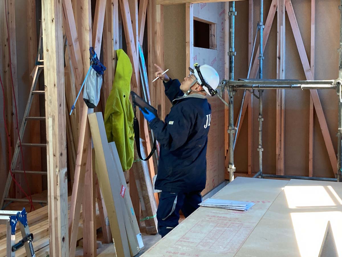 MO様邸の施工現場には、各工事を担当する様々な職人さんが日々出入りをしています。同時進行で内外いろいろな工事をしているんです