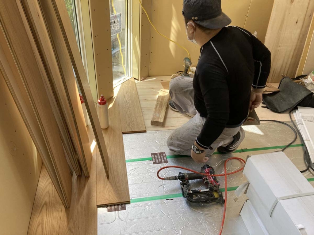 家へ帰ると、「こんな風に今私が住んでいる家の床もつくられたんだな」と思ったりしてしまいました(施工取材後あるあるでしょうか)