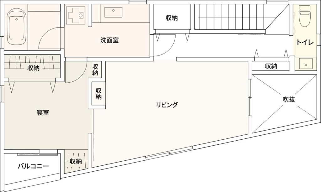 洗濯動線は 洗面室⇒寝室⇒バルコニー。