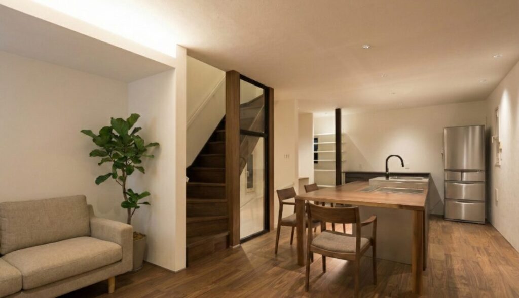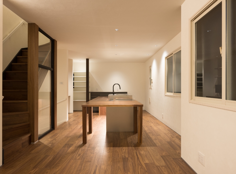 キッチンを真ん中に据えた都内の狭小住宅