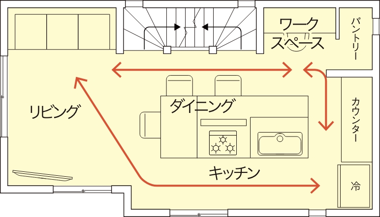 家の中をぐるっと回れる動線にすることで、家事の移動をラクにしました。