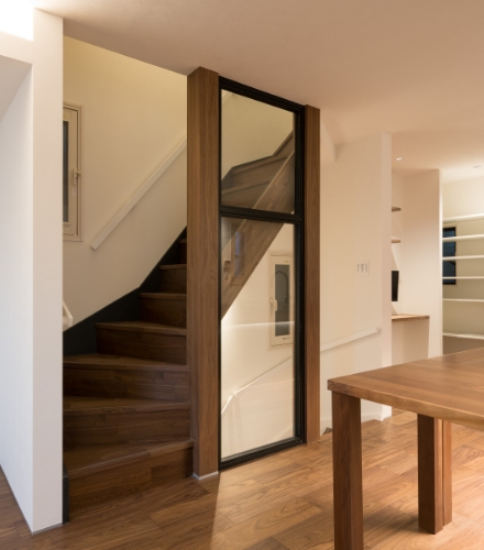 視線が抜けるガラス素材の採用、強度補強の筋交いを壁で埋めないなど、光と気配を通し、閉塞感を感じさせない空間をつくり出しています。