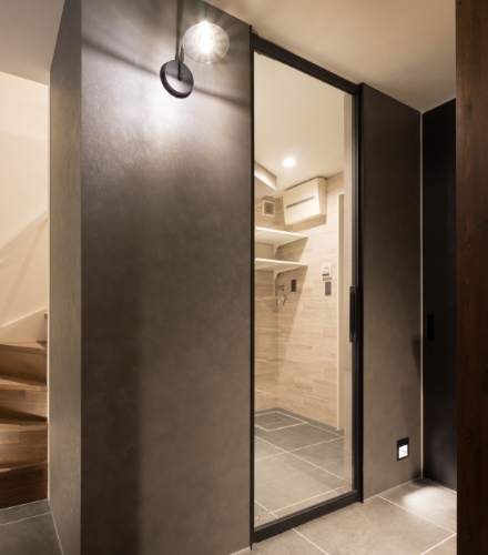 玄関土間には柔らかな間接照明を採用し、訪れる人を上質な雰囲気で迎え入れる空間に仕上げました。